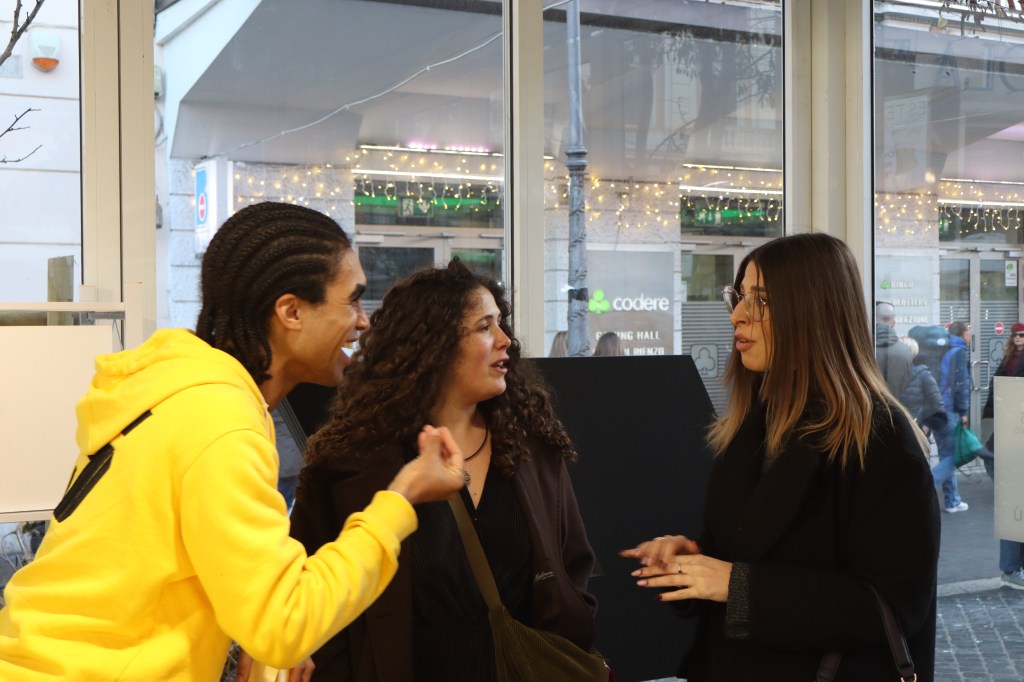 Non ho soldi, solo un pacchetto di sigarette. Ne offro una al ragazzo seduto, Luigi. Iniziamo a parlare, mi racconta in pochissimo tempo la sua storia. Sta per strada da sei mesi, da quando ha perso il lavoro. Non ha i genitori. Viene da un bel quartiere di Roma. Ora vive in una zona altrettanto bella: a piazza Cavour, dove dorme a terra insieme ad altre persone. Poi conosco l’altro ragazzo, Alex. Sono amici da una vita e Alex è lì per fare compagnia a Luigi, per non lasciarlo solo.