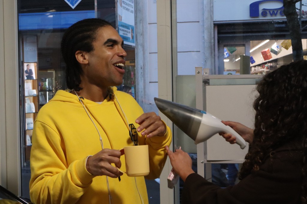 Si avvicina una ragazza inglese che vuole parlargli e mi chiede di tradurre in italiano che è una sua fan dall’anno scorso e che vorrebbe sapere dove altro può trovarlo, oltre che in strada. Sorrido: io non sono mai stata molto sicura del mio inglese ma in questo contesto va tutto bene. Lei se ne va e lui resta a parlare con me ancora un po’. Mi dice che è fidanzato, che la compagna non sta attraversando un periodo facile e lui le sta vicino come può. Vivono insieme. Mi saluta perché va ad esibirsi da qualche altra parte, stasera è arrivato tardi a piazza del Popolo e vuole recuperare.